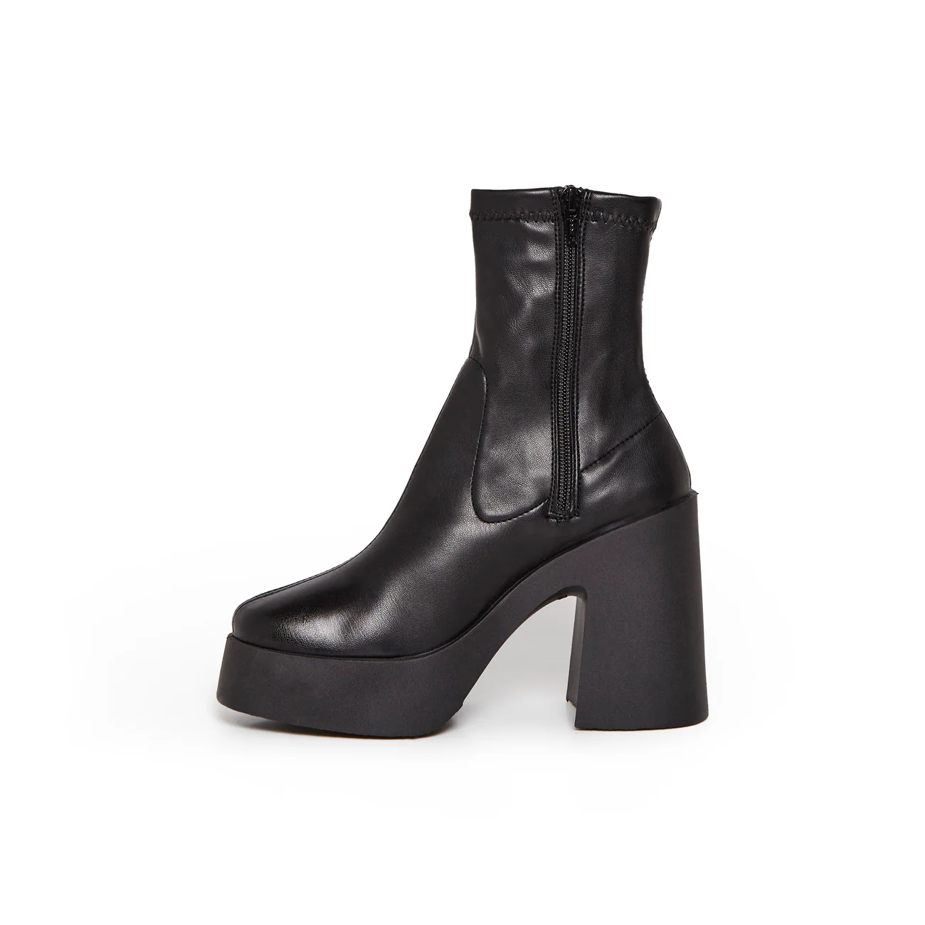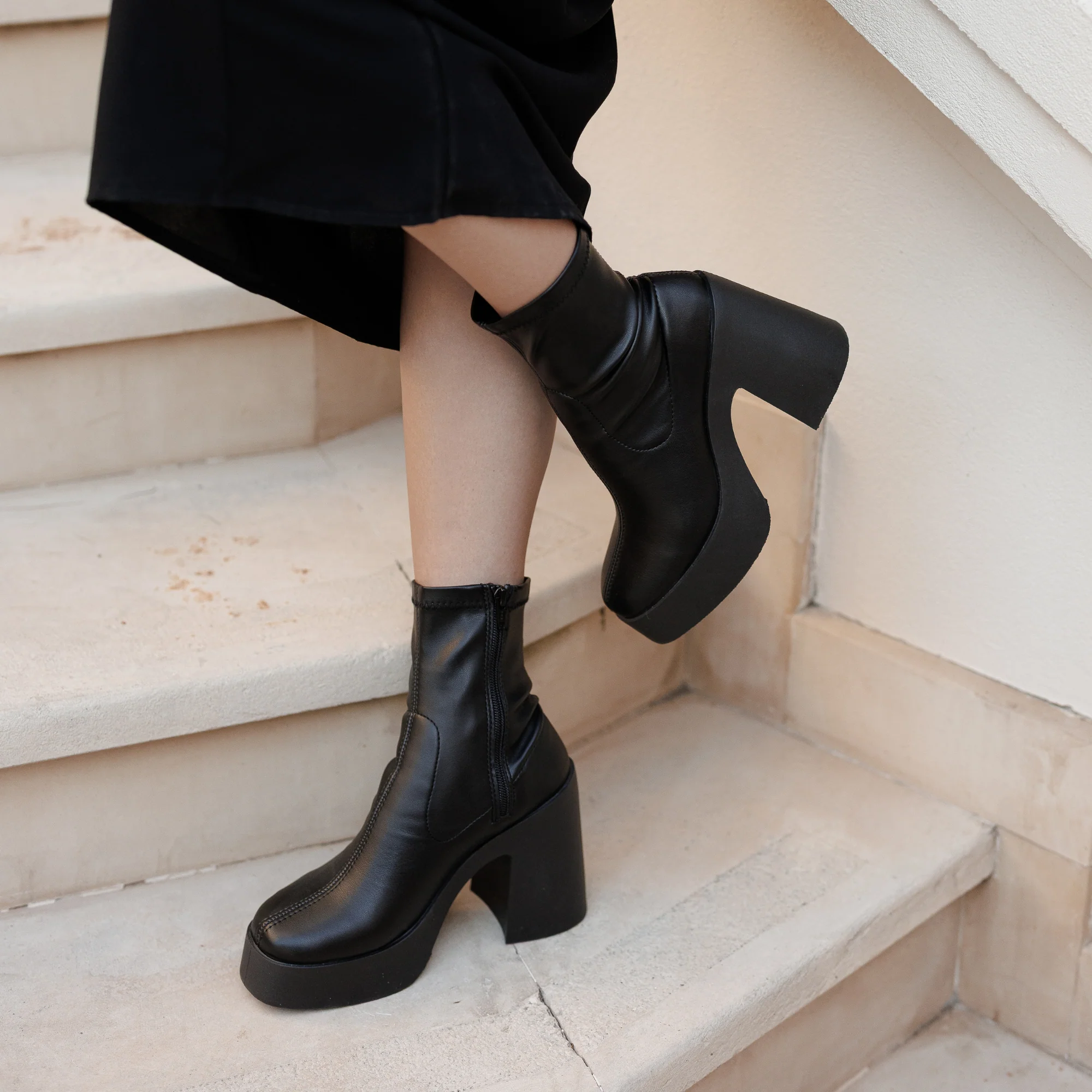 Agréable à porter tout au long de la journée grâce à ses talons à plateforme de 9cm, cette Boots en stretch sublimera vos jolies jambes pour