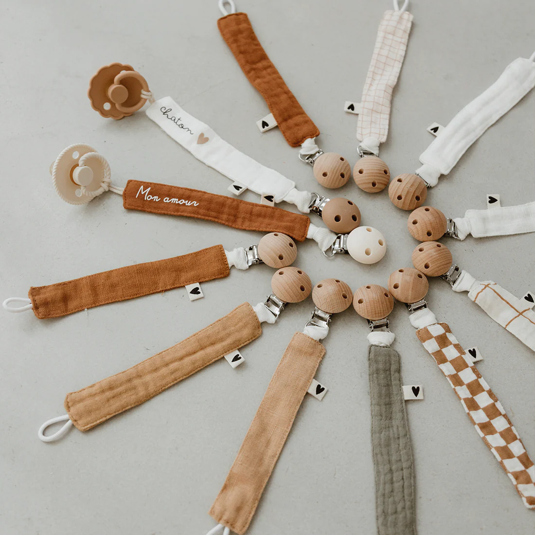 ✅ Matière : Double gaze de coton OEKO-TEX, clip en bois naturel et métal sans nickel