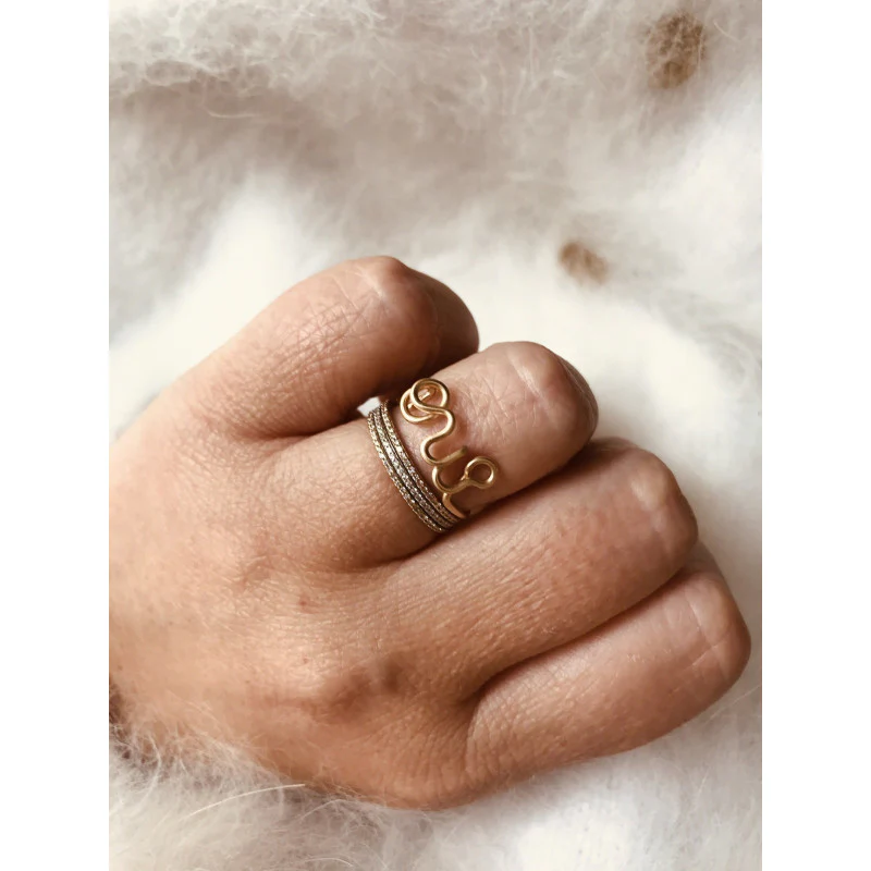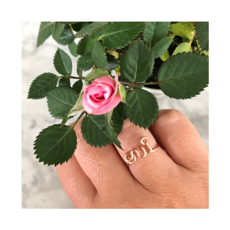 Cette bague « Oui » de la marque Padam Padam est sculpté tout au fil de métal précieux et s’adapte facilement au doigt.