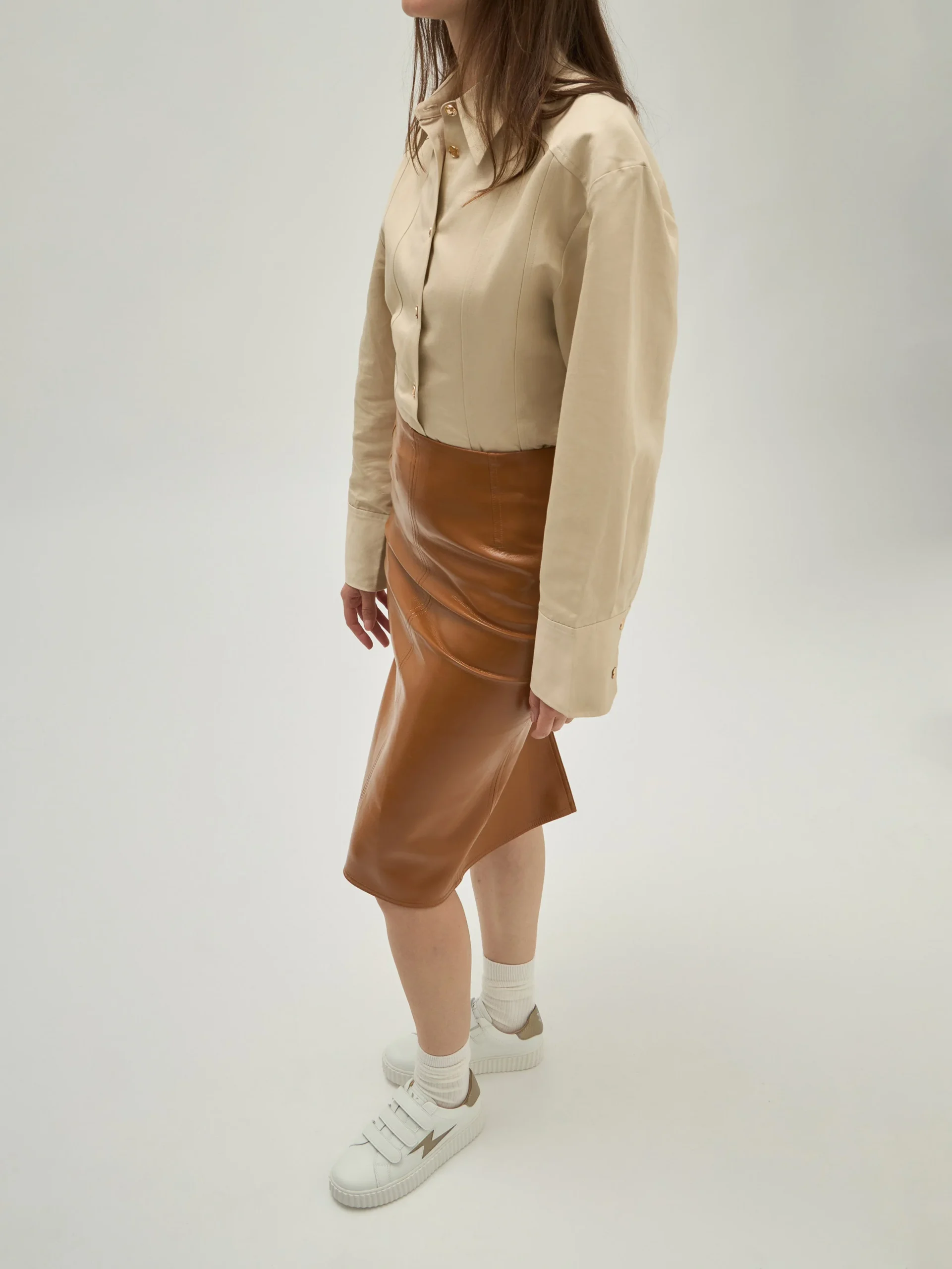 – Baskets en similicuir blanc