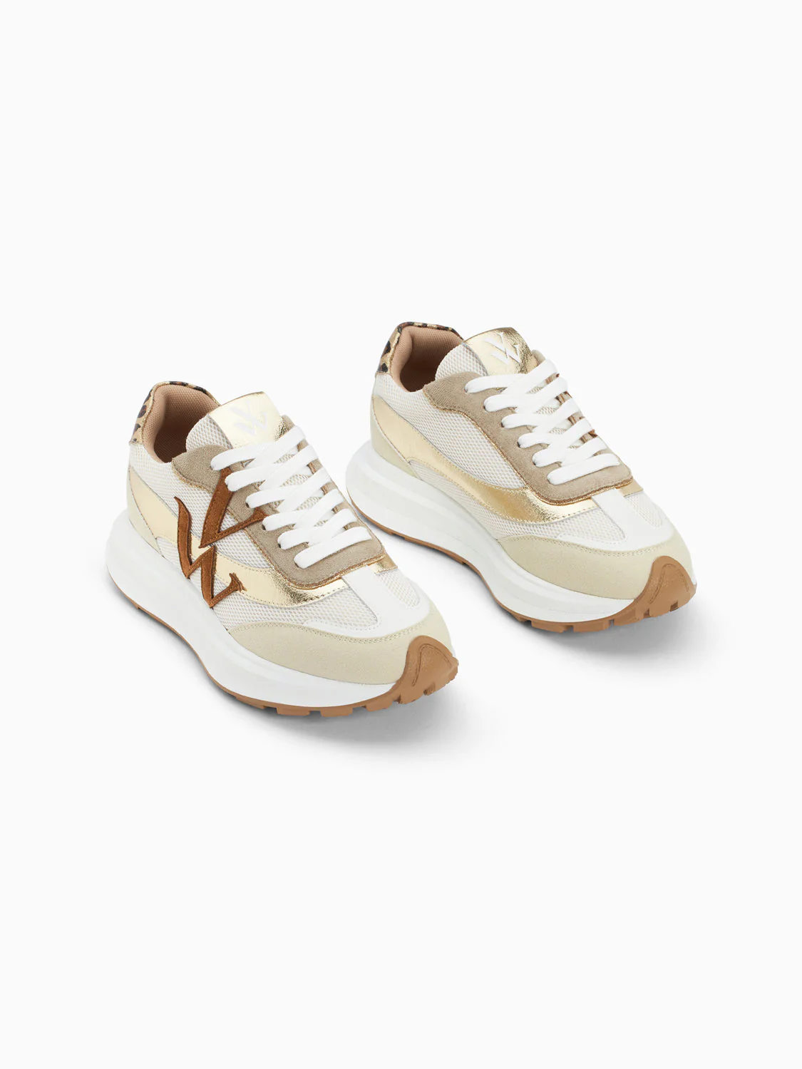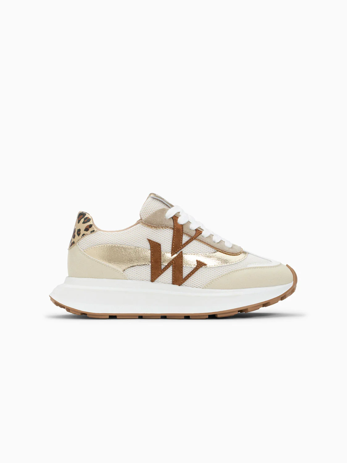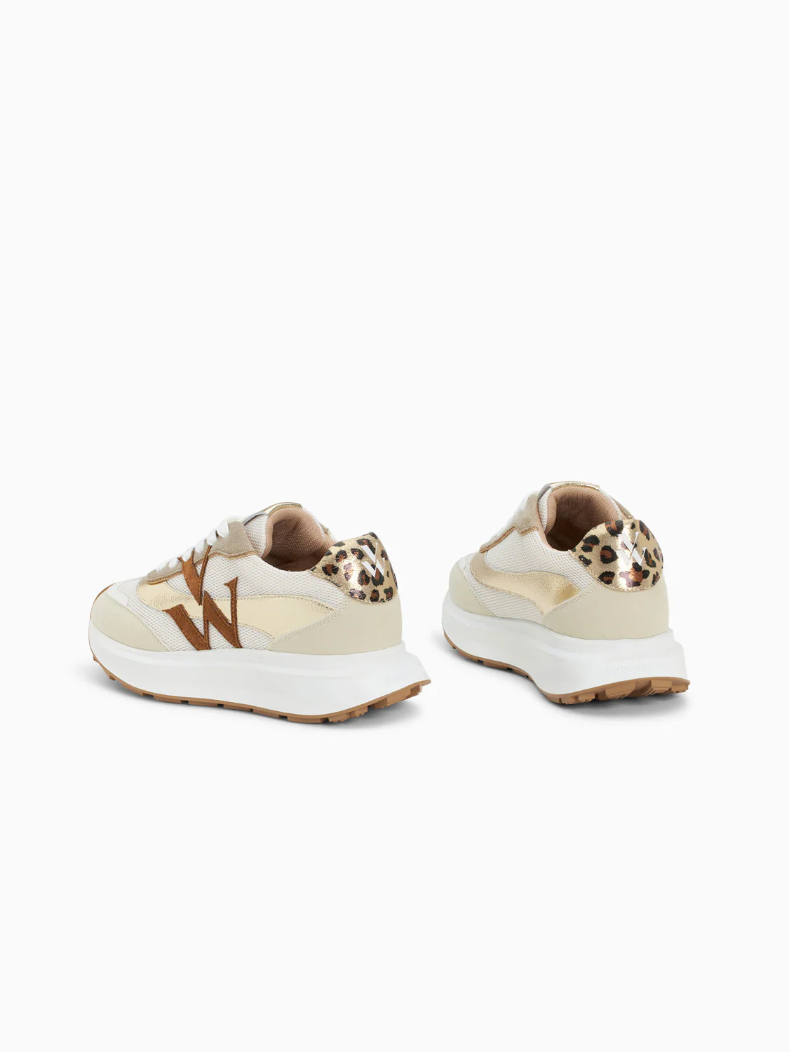 – Semelle oversize blanche incurvée et dessous de semelle camel