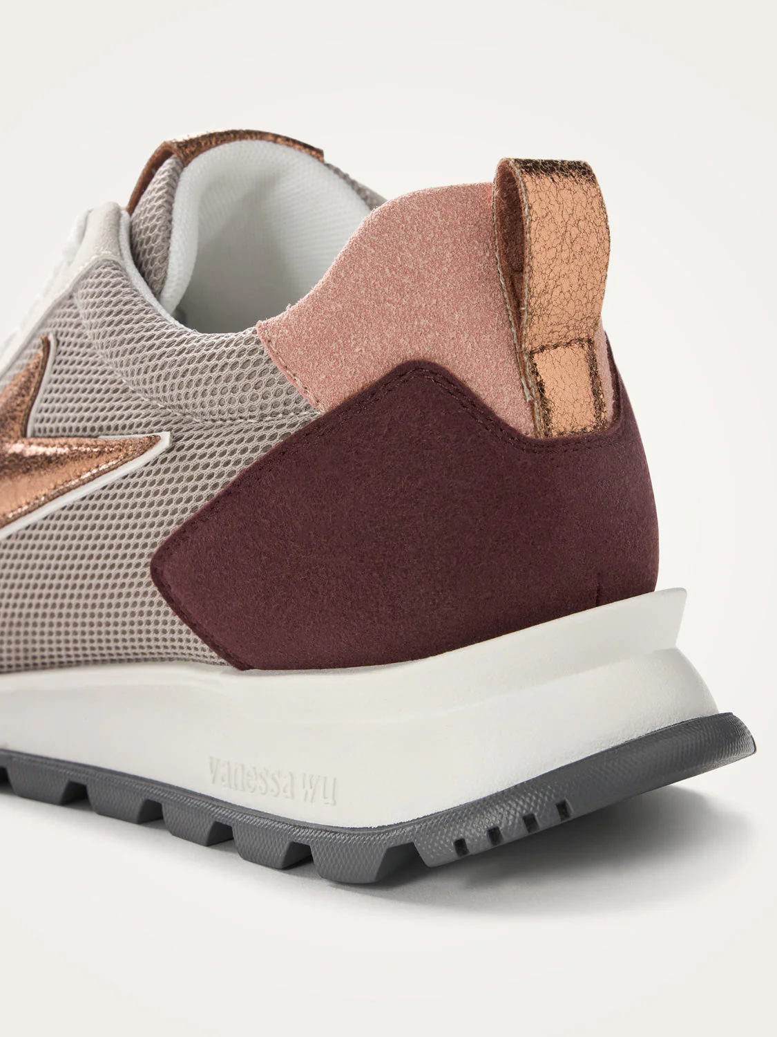 – Double empiècement éclair en similicuir blanc et en similicuir texturé bronze