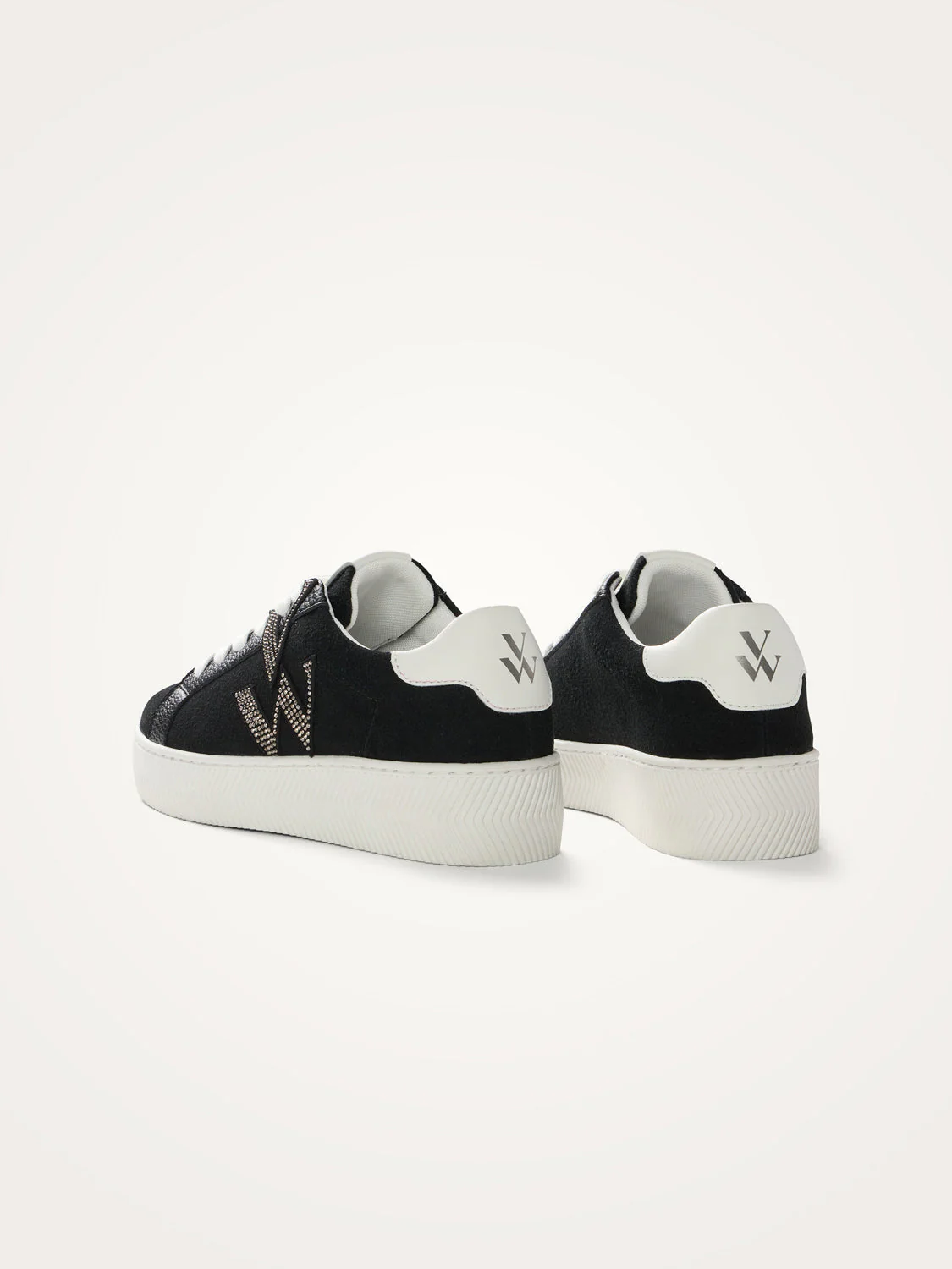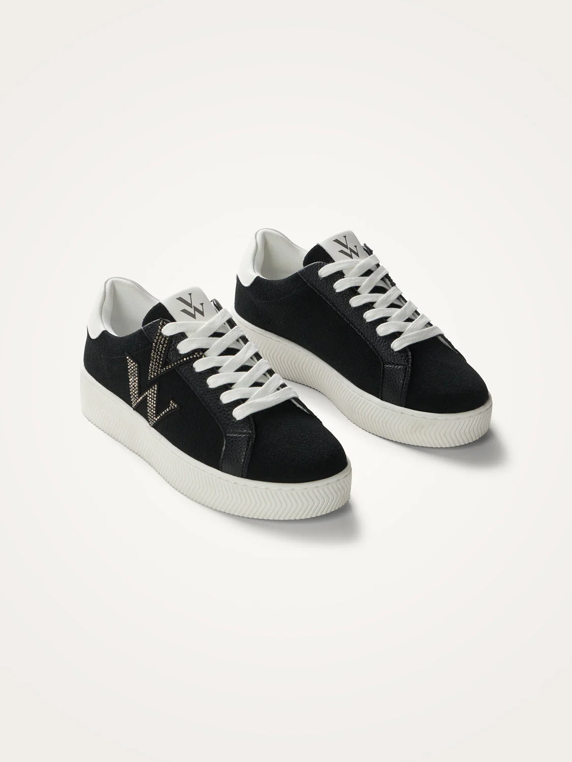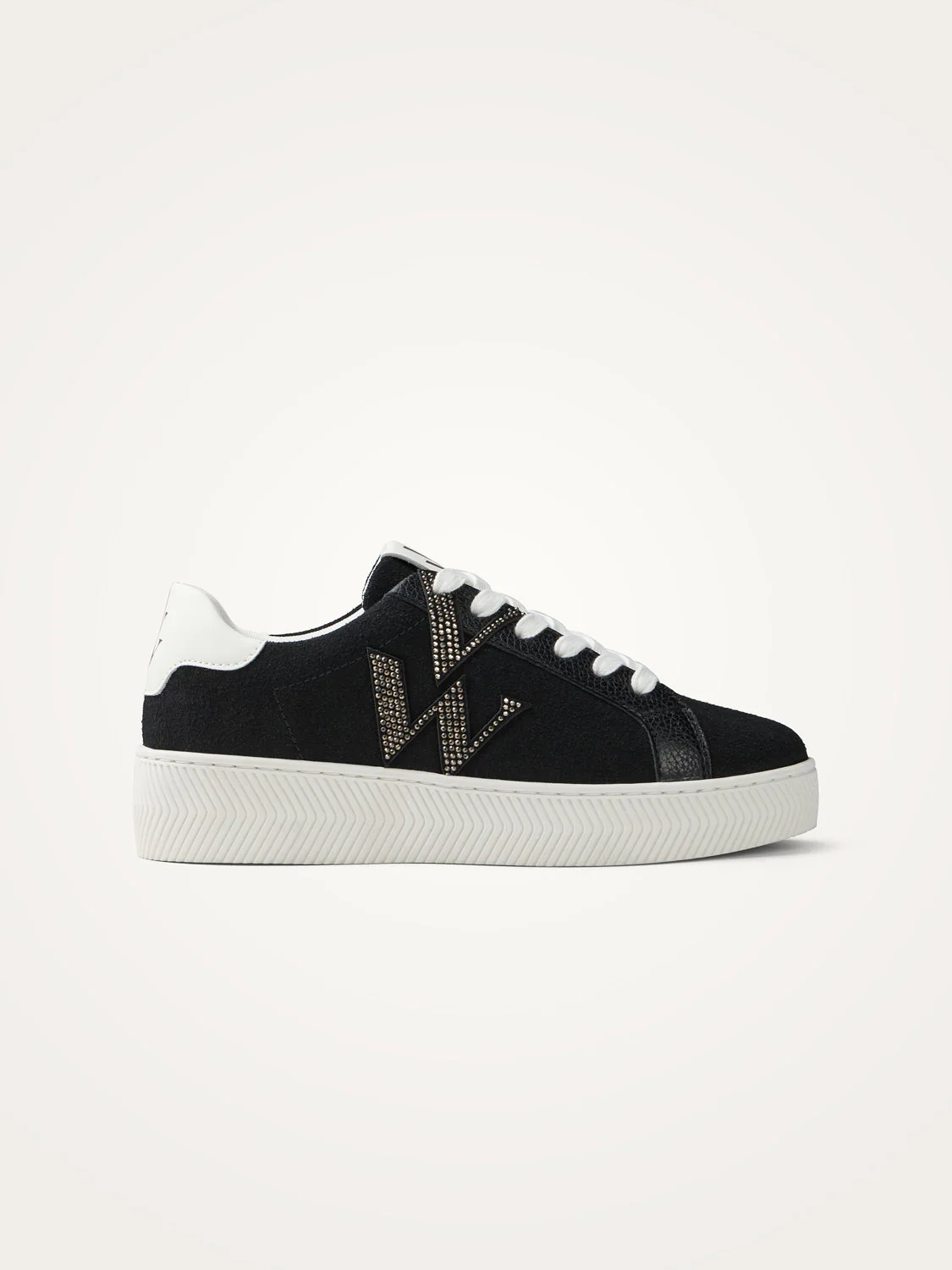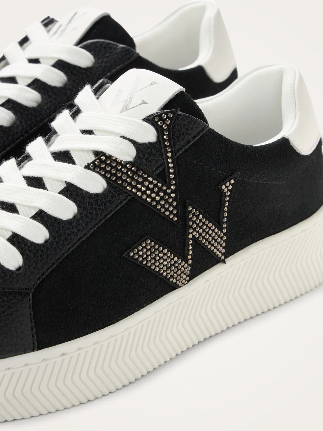 – Monogramme en suédine effet daim fendu noire à strass argent