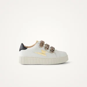 – Patch arrière et empiècement en forme d’éclair en similicuir blanc crème