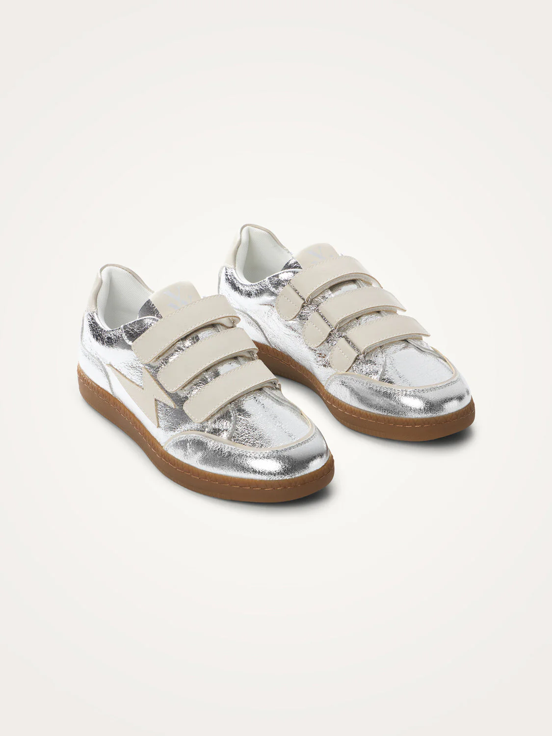 – Baskets en similicuir texturé argent