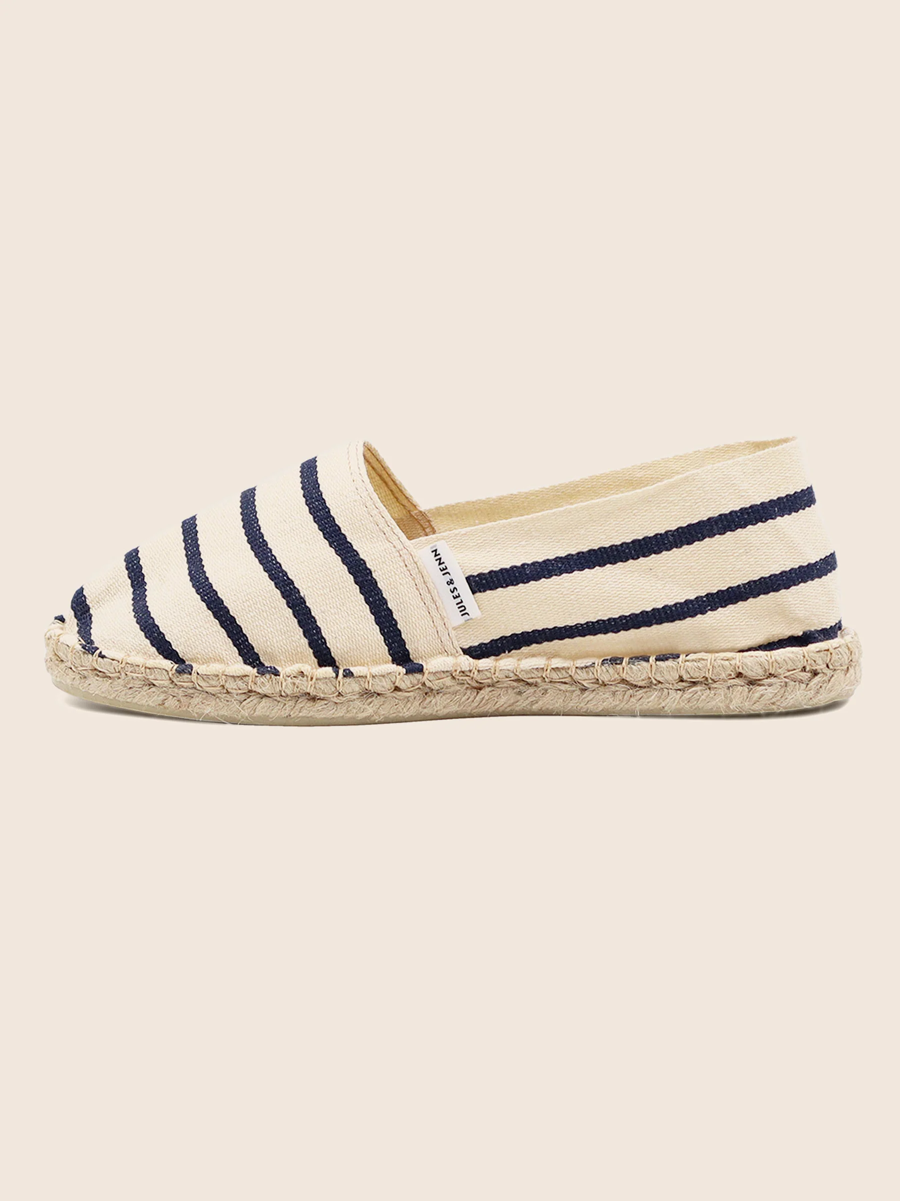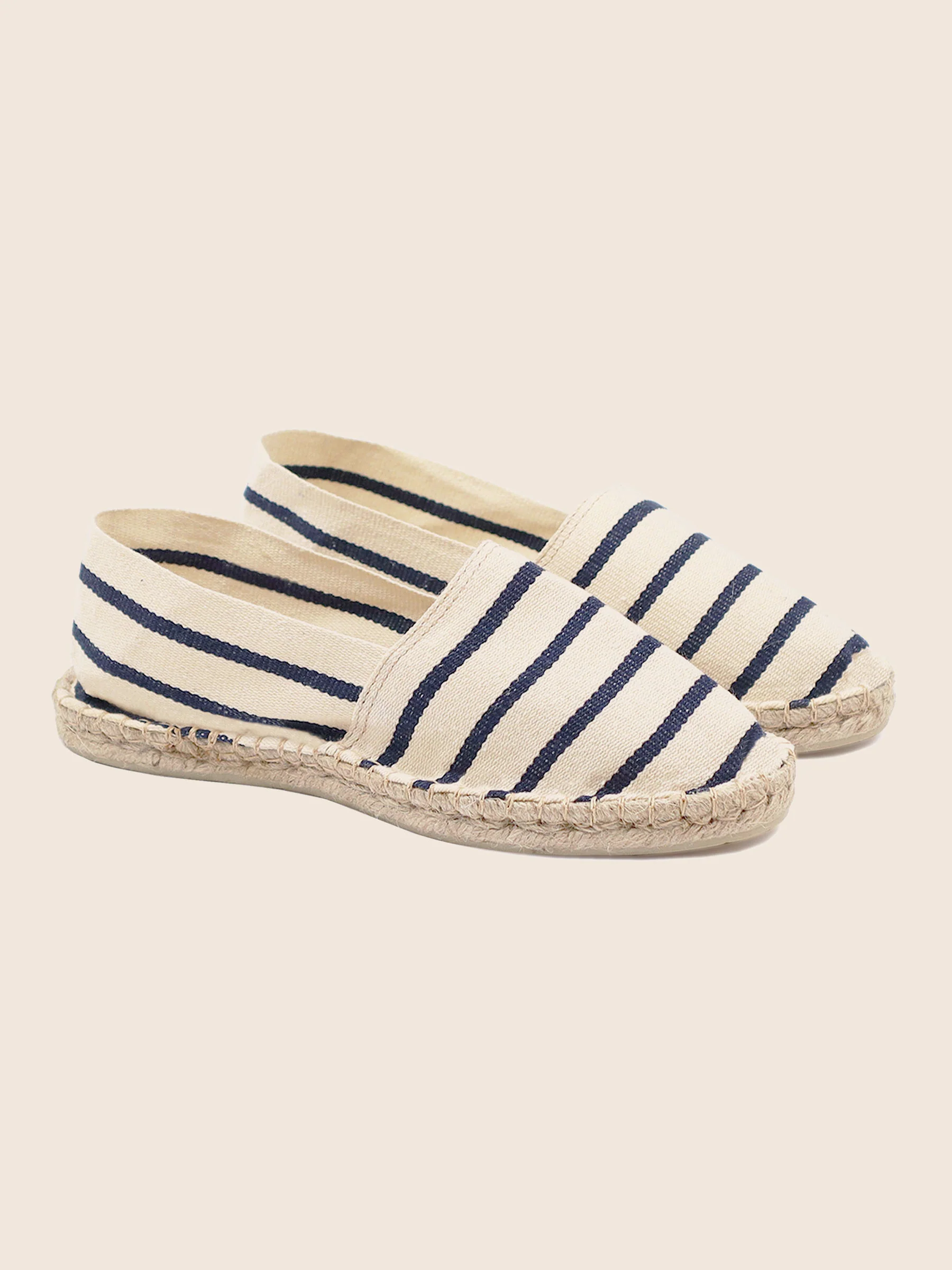 - Espadrilles en toile de coton rayé blanc et bleu non doublé