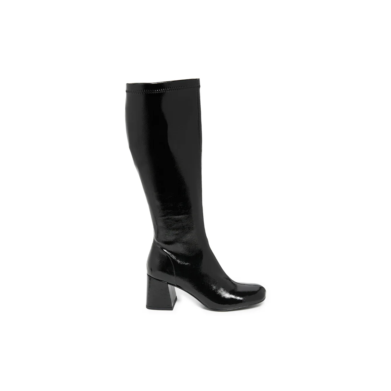 Avec son effet verni glossy et sa ligne élancée, la botte GABRYELLA insuffle une vraie touche rétro à vos tenues. Inspirée des silhouettes des années 60, elle se modernise avec un talon carré stable et un design épuré. Sa tige près de la jambe crée un effet seconde peau flatteur, parfait pour styliser une robe fluide, une jupe trapèze ou un jean slim. C’est la paire coup de cœur de la saison pour affirmer votre allure avec audace et féminité.