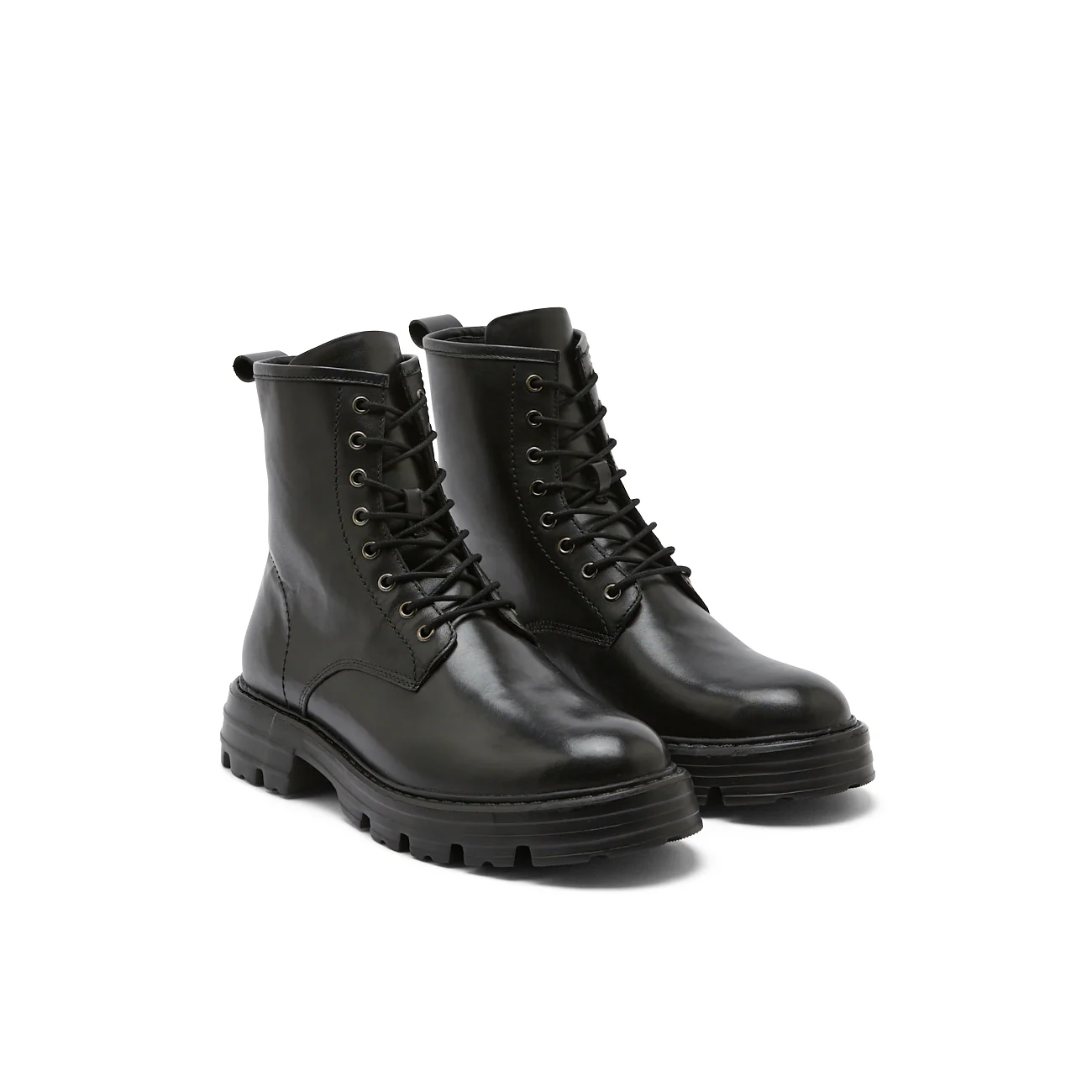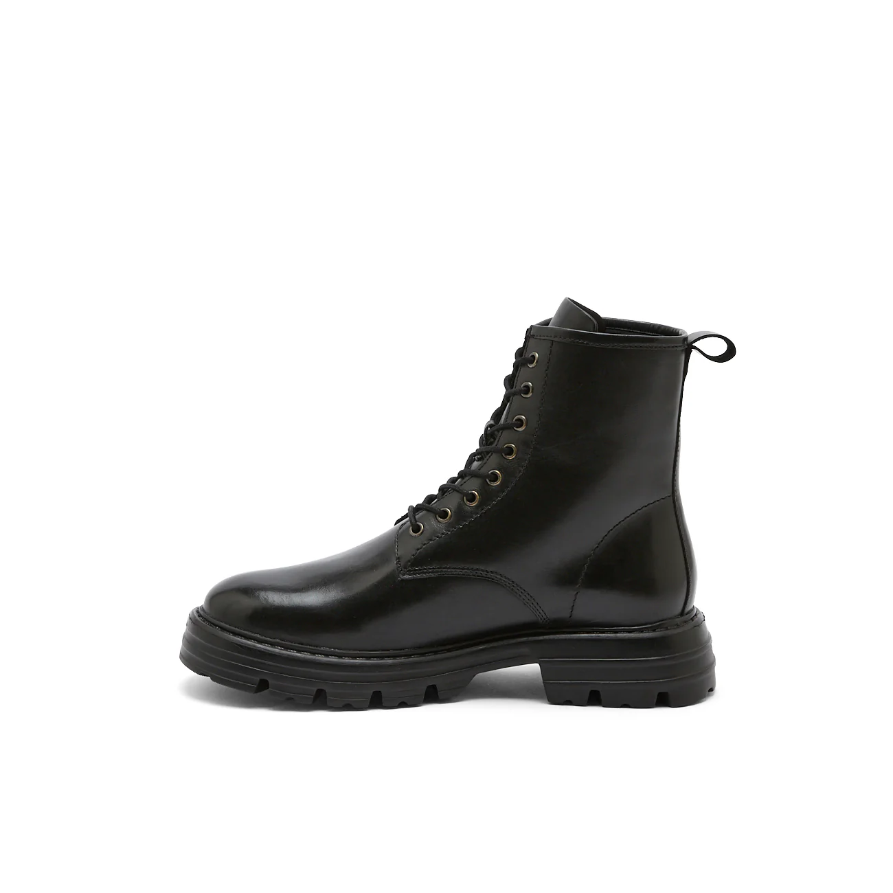 Affirmez votre style avec la boots GREGORY en cuir noir signée ANDRÉ. Ce modèle à la silhouette affirmée allie parfaitement l’esprit militaire à une élégance urbaine. Sa tige montante lacée et sa semelle crantée imposante assurent un maintien optimal et une démarche assurée. Fabriquée en cuir lisse noir, elle vous accompagne par tous les temps, en ville comme en escapade.