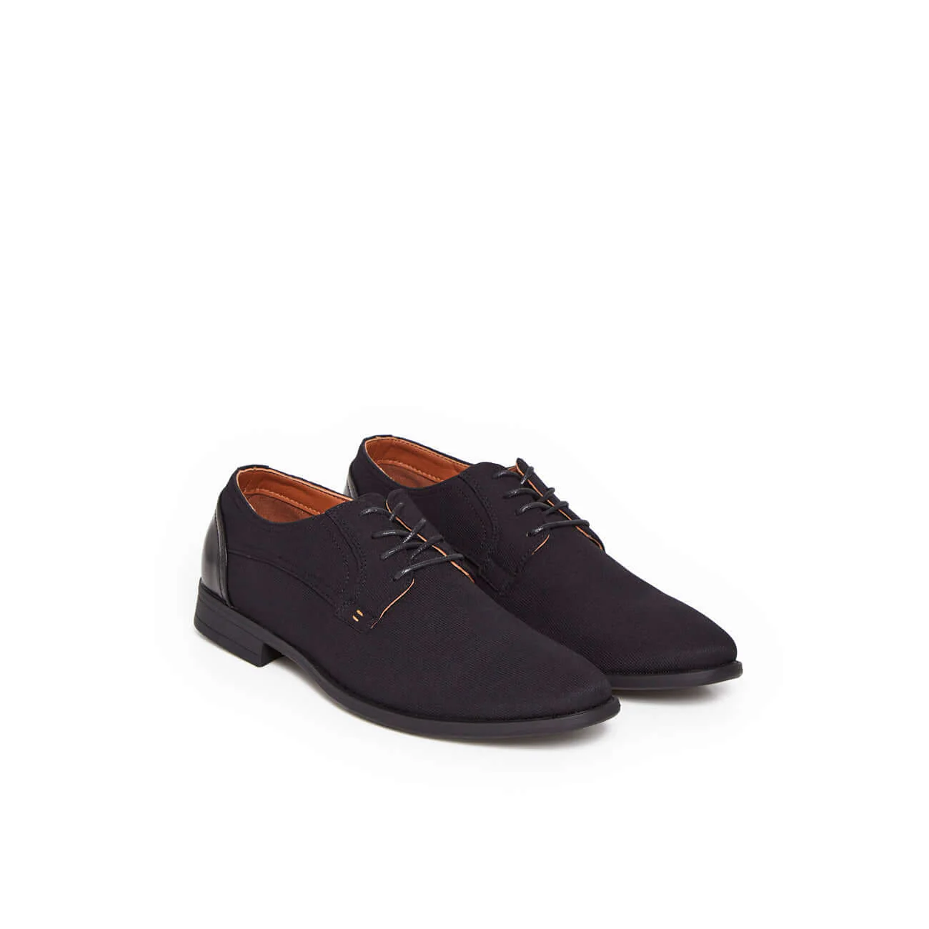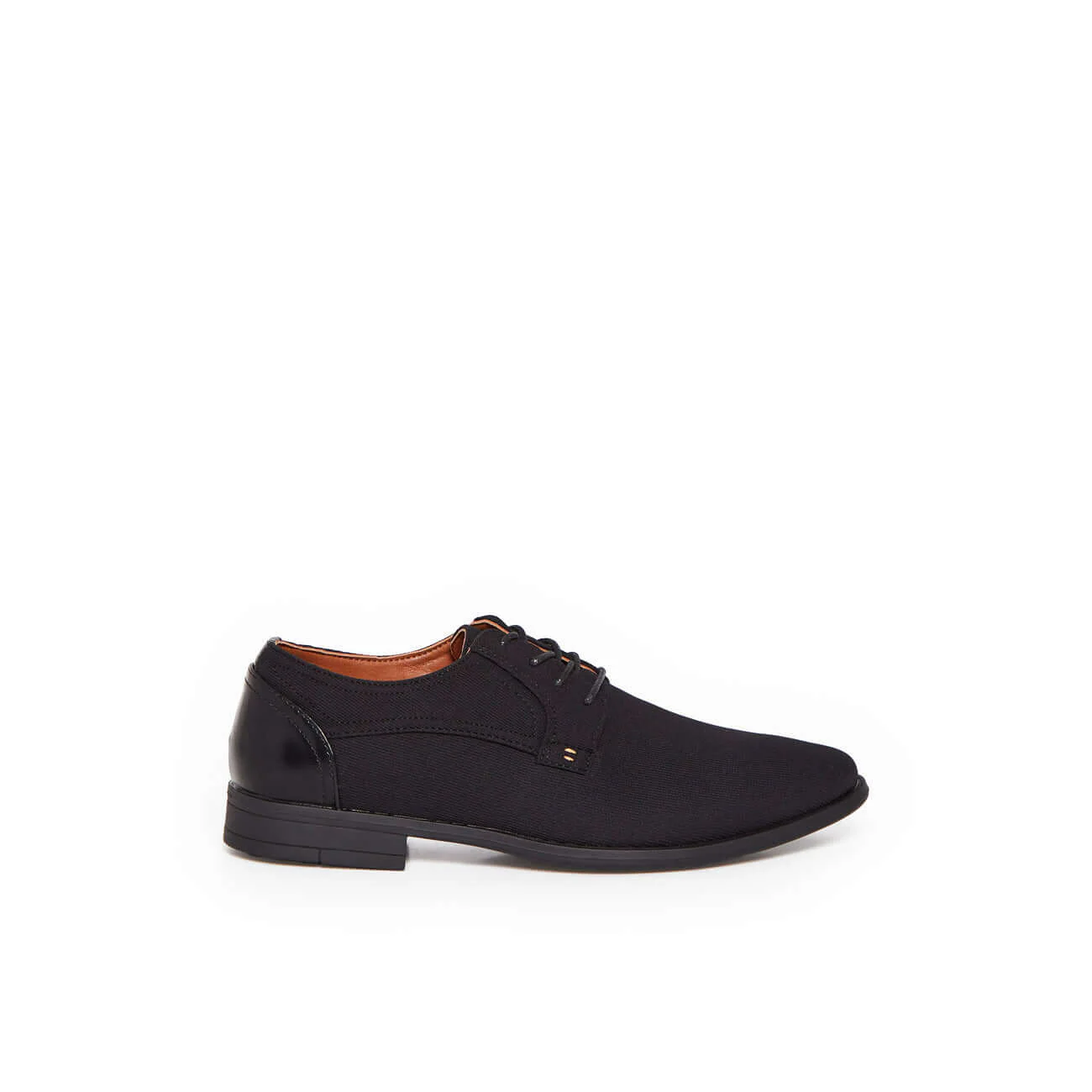Ces derbies noires pour homme offrent un parfait équilibre entre style minimaliste et confort du quotidien. Confectionnées en toile unie avec un empiècement arrière ton sur ton effet cuir, elles s’associent aussi bien à un pantalon habillé qu’à un jean brut. Une valeur sûre pour un look soigné sans effort.