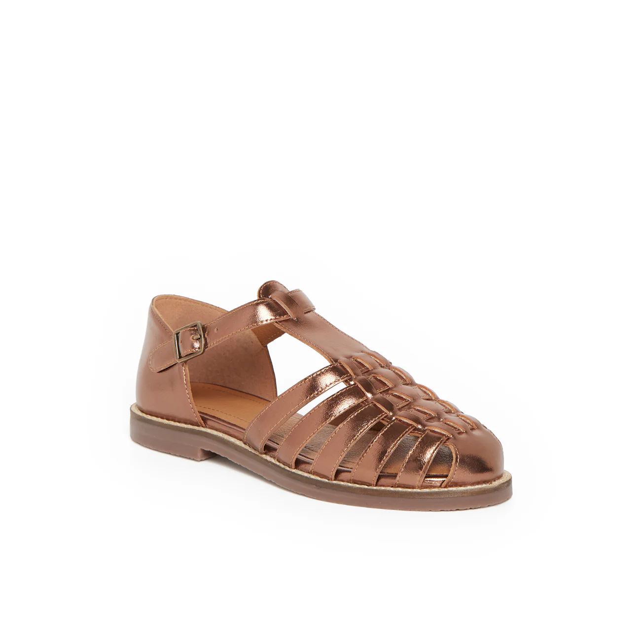 Faites briller vos looks d’été avec la sandale PETRONILLE en cuir bronze, un modèle à la fois élégant et facile à porter. Son cuir métallisé illumine vos tenues tandis que son tressage travaillé ajoute une touche d’authenticité au style. Avec sa silhouette rétro revisitée et son confort pensé pour l’usage quotidien, cette sandale fermée à l’avant est idéale pour arpenter la ville ou accompagner vos escapades ensoleillées. Une pièce mode qui allie charme artisanal et allure moderne.