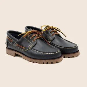 Chaussures bateau crampons cuir bleu