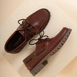 Chaussures bateau cuir cognac