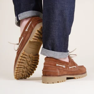 Chaussures bateau cranté daim camel